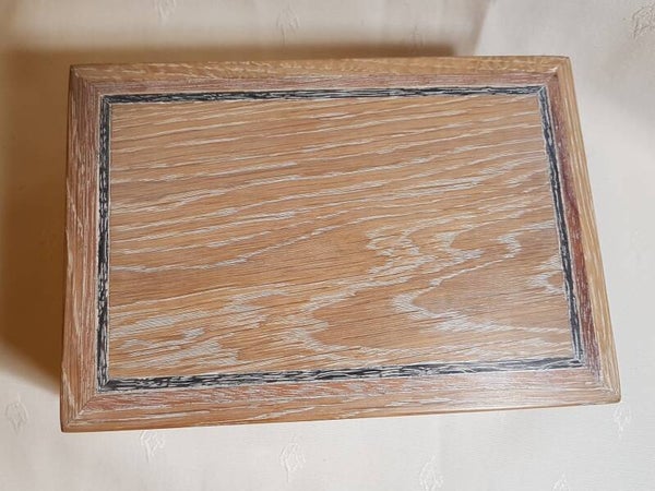 Le dessus est composé de de l'incrustation de trois filets, Acajou, Erable et Chêne teinté noir.